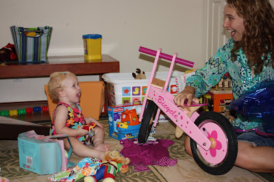 Nora and the Birthday Girl playing...actually i believe Lily is getting ready to swipe Nora's toy and Nora is trying to tell us