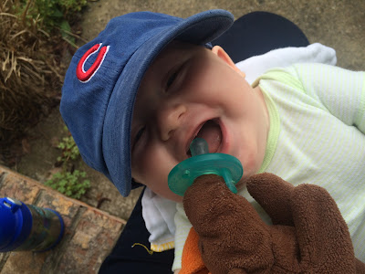 trying on Davis's cubbies hat. looks pretty good, yes?